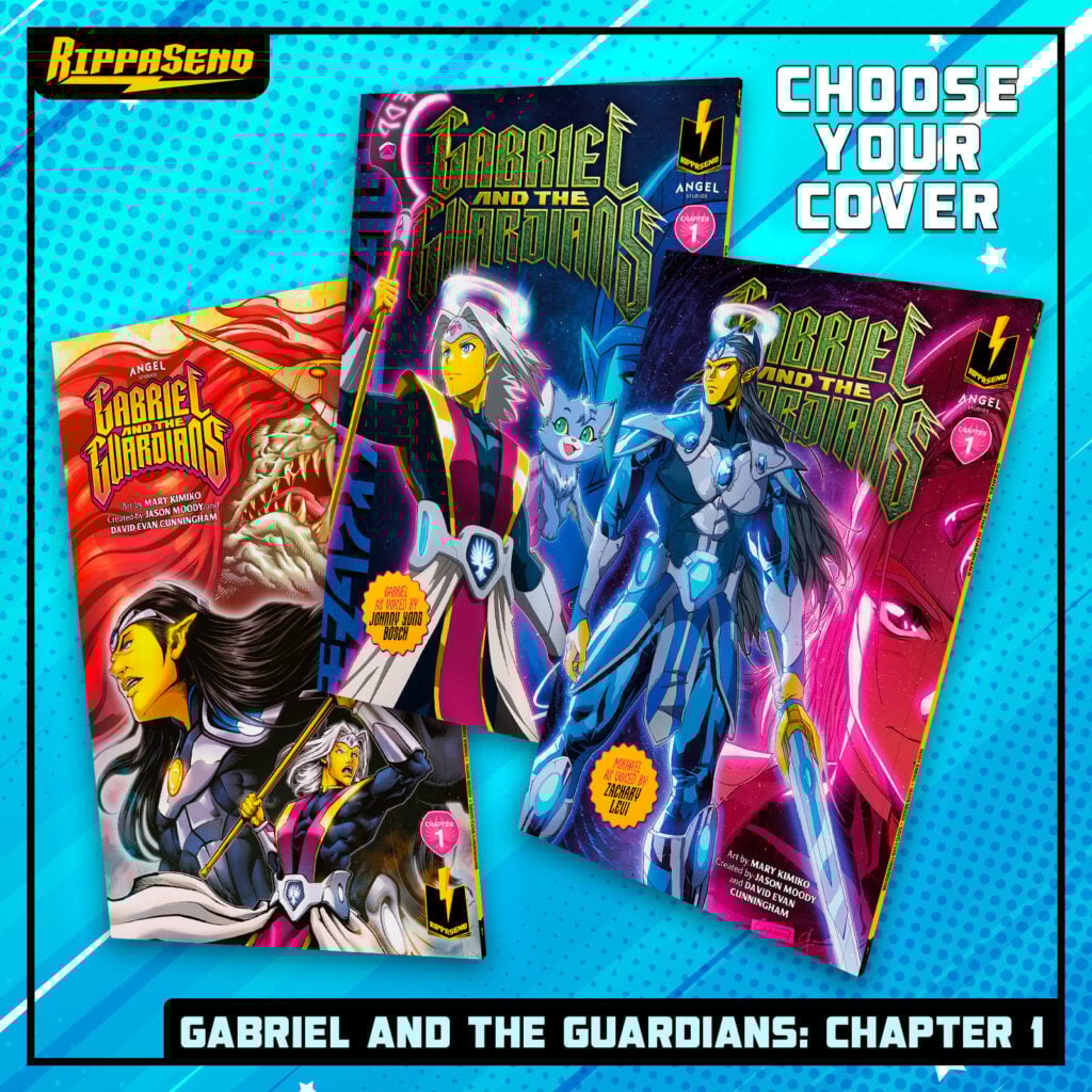 Rippaverse Comics, through our creator-owned publishing wing, is proud to be the official publisher of the Gabriel and the Guardians manga! Based on the animated series produced by Angel Studios and Colossul Studios, Gabriel and the Guardians is a thrilling adventure set in a world of celestial battles, heroic destinies, and powerful forces beyond imagination. The series features an all-star voice cast, including Johnny Yong Bosch, Cristina Vee, Matt Lanter, James Arnold Taylor, and Cristina Milizia. The Gabriel and the Guardians manga will expand on the universe of the show, giving fans an even deeper look into the story, characters, and lore.