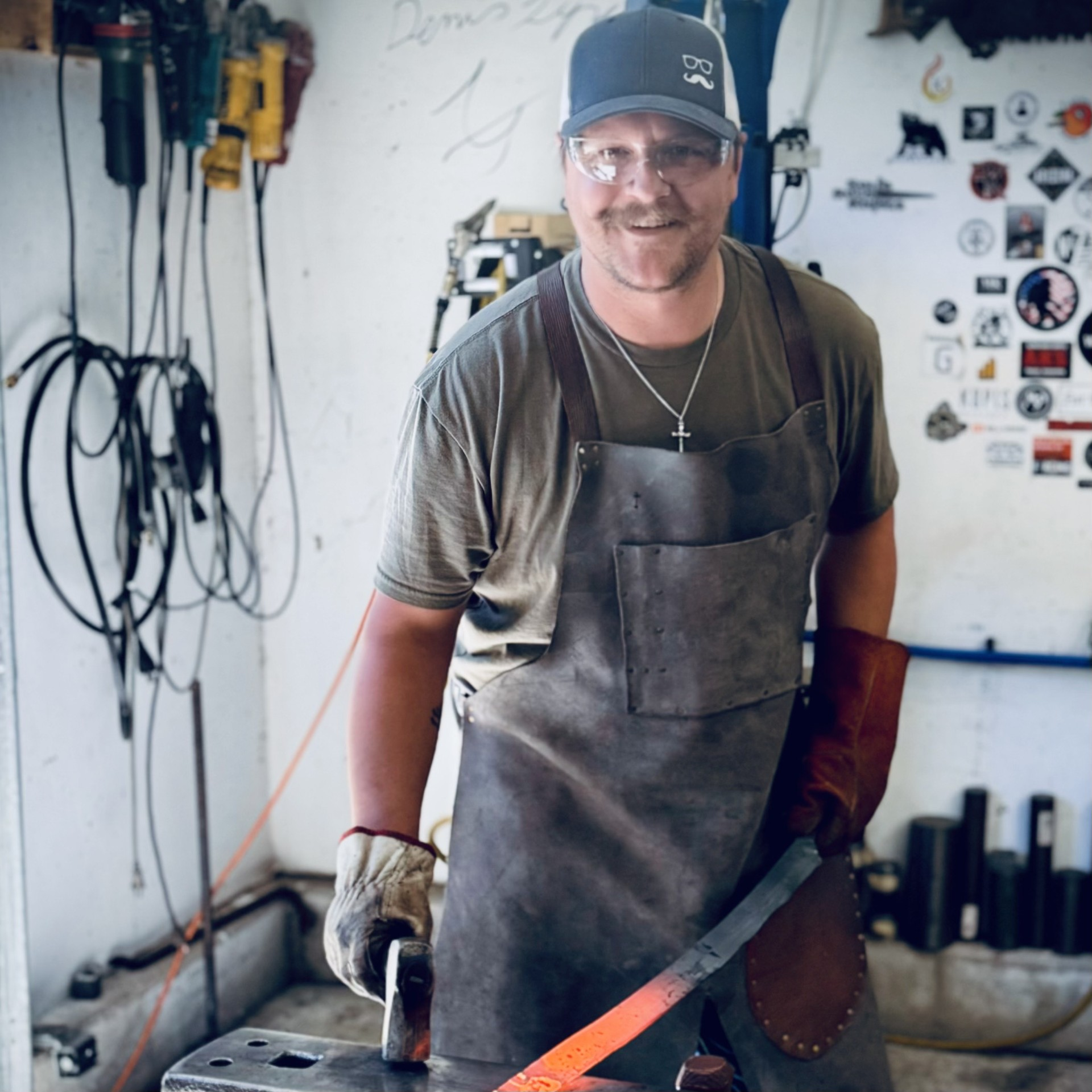 While writing remains central to his creative identity, Russ’ work is equally defined by making things with his hands. A blacksmith and builder at heart, he believes craft and story are inseparable—that ideas gain weight when they are forged, assembled, or tested through labor. Whether spinning a wrench, shaping steel, or putting words to the page, his work reflects respect for process, durability, and legacy. Russ’ work spans written and digital commentary alongside physical craftsmanship. His creative output explores how modern stories draw from older traditions—myth, history, and recurring cultural cycles—while his hands-on work grounds those ideas in steel and function. Notably, the swords he forged for the book stand as extensions of that philosophy: narrative made physical, history rendered in form and weight.